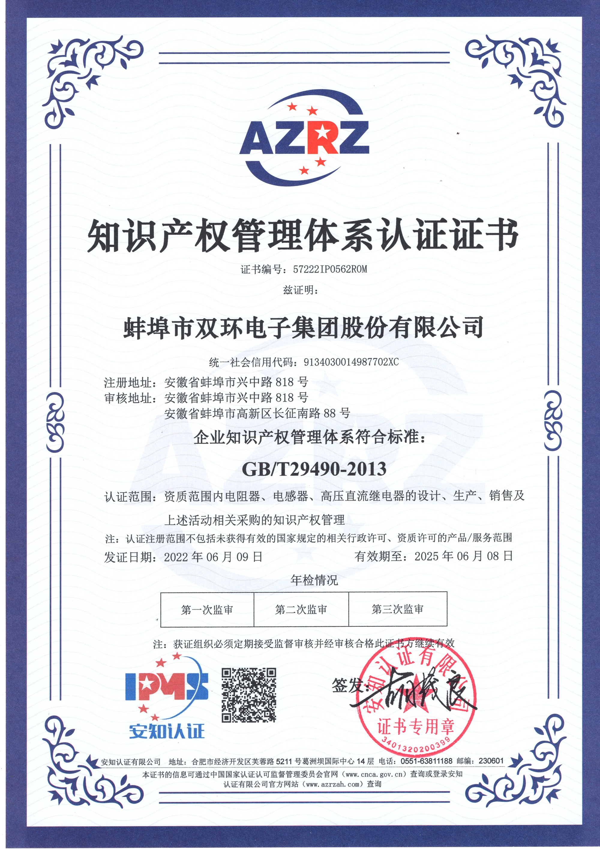 Die Zertifizierung deckt alle Produkte des Unternehmens ab, einschließlich Widerstände, Induktivitäten und HGÜ-Relais. Die Experten des Zertifizierungs- und Auditteams führten eine umfassende Überprüfung der Funktionsabteilungen und Produktionseinheiten des Unternehmens durch Stichprobeninspektion, Abfrage und Austausch sowie Materialsammlung durch. Es gab eine faire und gerechte Bewertung des Managementsystems für geistiges Eigentum des Unternehmens, bestätigte die Vorteile des Systembetriebs, wies auf die Schwachstellen hin und erklärte schließlich, dass das Managementsystem für geistiges Eigentum der Double Circle -Gruppe die Anforderungen der Zertifizierungsstandards erfüllte und sich bereit erklärte, die Registrierung und Zertifizierung zu empfehlen.
