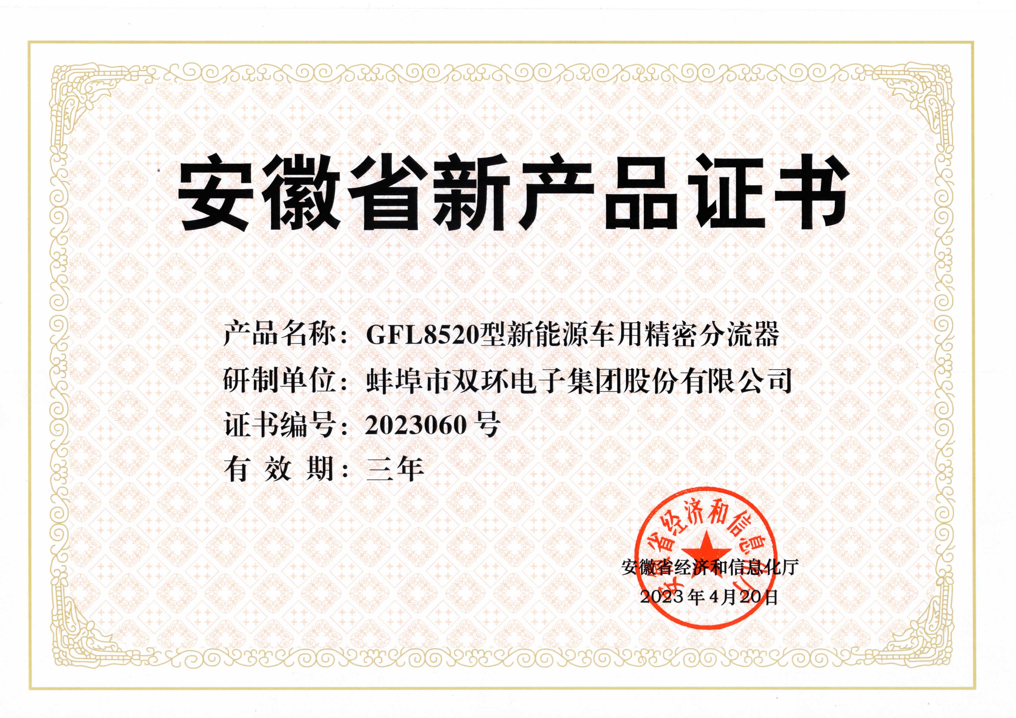 Doppelring-Gruppe GFL8520 neuer Energiefahrzeug-Präzisions-Umschalter passierte die erste Charge der Anhui-Provinz-neuen Produktzertifizierung in 2023